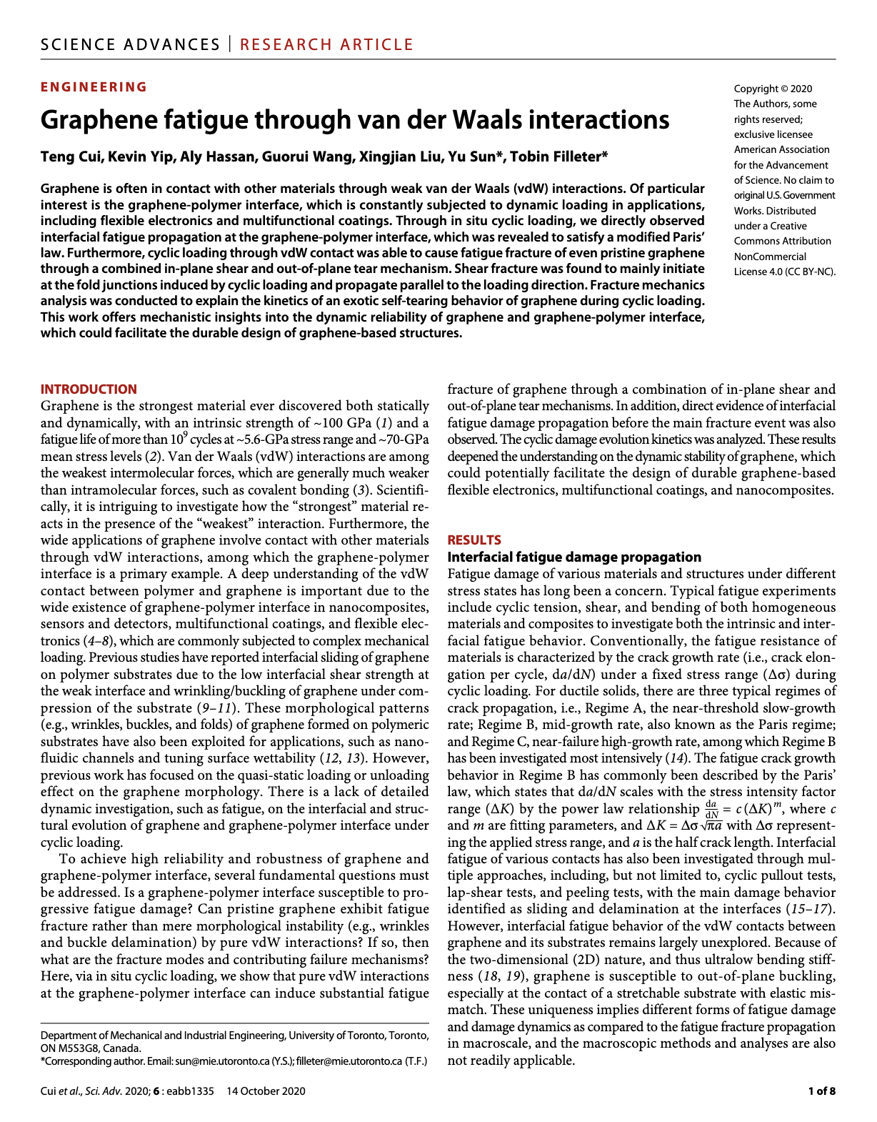 9. T. Cui, K. Yip, A. Hassan, G. Wang, X. Liu, Y. Sun, T. Filleter, Graphene fatigue through van der Waals interactions, Science Advances, 6 (2020) eabb1335.
